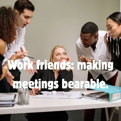 - “Work friends: making meetings bearable.”