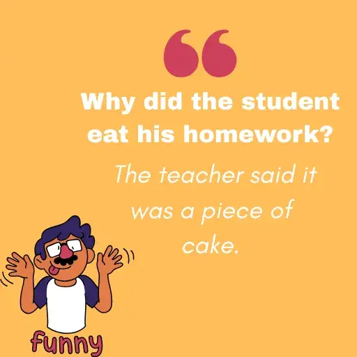 - Why did the student eat his homework? The teacher said it was a piece of cake.