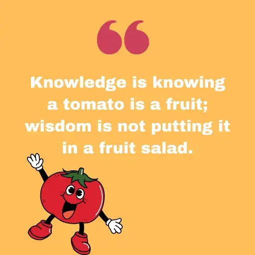 - Knowledge is knowing a tomato is a fruit; wisdom is not putting it in a fruit salad.